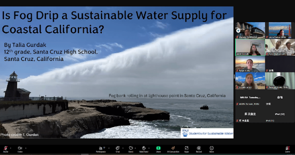 Japanese Association of Hydrological Sciences conference, session on Students for Sustainable Water, Yamanashi University, Japan: Is fog drip a sustainable water supply for coastal California, by Talia Gurdak from Santa Cruz High School, October 12, 2024: story here