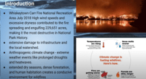 Carr Fire and Whiskeytown National Recreation Area, California: Wildfire and Water Quality in California, by Robert Chyr and Christian Manisay (BS Environmental Science), San Francisco State University, School of the Environment, Spring, 2024. Listen to their unique news story from the WaterGang News Outlet: Watch the presentation here.